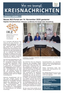 Kreisverwaltung Vulkaneifel, Mainzer Straße 25, 54550 Daun, 06592/933-0; www.vulkaneifel.de IMPRESSUM REDAKTION Verena Bernardy, Isabel Veldkamp Verlag + Druck: Linus Wittich KG, Föhren Ausgabe: 47/2025 Neues IKZ-Portal am 14. November 2025 gestartet Digitaler Schulterschluss mehrerer Landkreise für bürgernahe Verwaltung Am 14. November 2025 fällt der Startschuss für das neue IKZ-Portal – ein gemeinsames Digitalprojekt der Landkreise Bernkastel-Wittlich, CochemZell, Vulkaneifel und des Eifelkreises Bitburg-Prüm, das im Rahmen der Interkommunalen Zusammenarbeit (IKZ) entstanden ist. Das Portal bündelt erstmals die Verwaltungsdienstleistungen aller vier Landkreise, ihrer Verbandsgemeinden und Städte auf einer zentralen Plattform und ist damit ein wichtiger Meilenstein der digitalen Verwaltungsmodernisierung in Rheinland-Pfalz. Das IKZ-Portal bietet Bürgerinnen, Bürgern und Unternehmen einen zentralen, durchgängig verfügbaren Zugang zu zahlreichen kommunalen Dienstleistungen. Die Bedienung ist intuitiv, übersichtlich und nutzerfreundlich. Unabhängig davon, ob ein Anliegen in den Zuständigkeitsbereich von Landkreis, Verbandsgemeinde oder Stadt fällt – alle relevanten Services sind über eine gemeinsame digitale Anlaufstelle erreichbar. Damit entfällt die aufwendige Suche nach der richtigen Verwaltungsebene. Zahlreiche Dienstleistungen sind bereits online verfügbar, darunter beispielsweise der Elterngeldantrag, die Zahlung der Hundesteuer, die Beantragung eines Jagdscheines oder die Online- Terminvereinbarungen für die KFZ-Zulassungsstellen. Darüber hinaus bietet das Portal umfassende Informationen zu Zuständigkeiten und Ansprechpartnern der beteiligten Verwaltungen. Das IKZ-Portal setzt die erfolgreiche Geschichte des ehemaligen Bürgerportals Cochem-Zell, einem der ersten Bürgerportale in Rheinland-Pfalz, fort. Der Landkreis Cochem-Zell und die Verbandsgemeinde Kaisersesch starteten 2013 gemeinsam als Pilotprojekt „Modellkommune E-Government“ und zählten zu den Vorreitern in der digitalen Transformation der öffentlichen Verwaltung. Ziel war es, zahlreiche Dienstleistungen über das Internet bereitzustellen und so die Servicequalität für Bürger und Unternehmen nachhaltig zu steigern. Seit dem Start des Bürgerportals im November 2016 hat die Kreisverwaltung Cochem-Zell sowie die Verwaltungsbehörden der vier zugehörigen Verbandsgemeinden dieses Projekt stetig ausgebaut und es diente als Vorlage für viele ähnliche Initiativen. Mit dem neuen Portal schaffen die beteiligten Landkreise eine gemeinsame, benutzerfreundliche und zukunftsorientierte Lösung, die den Bürgerservice verbessert und Verwaltungsprozesse effizienter gestaltet. Weitere Informationen finden Interessierte unter www.ikzportal.de bzw. www.ikz-portal.de. Der offizielle Startschuss ist am 14. November 2025 gefallen – modern, digital und für alle zugänglich. Landrätinnen und Landräte unterzeichnen die Kooperationsvereinbarung zum IKZ-Portal. Foto: Kreisverwaltung Vulkaneifel